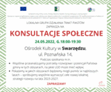 Zapraszamy mieszkańców gmin, działaczy/ki społeczne, przedstawicieli/ki organizacji pozarządowych, grup nieformalnych, przedstawicieli/ki władz lokalnych na KONSULTACJE SPOŁECZNE.